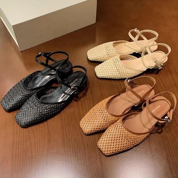 Design sense niche hollow woven bag head sandals women's summer new French rear air breathable low heel sandals