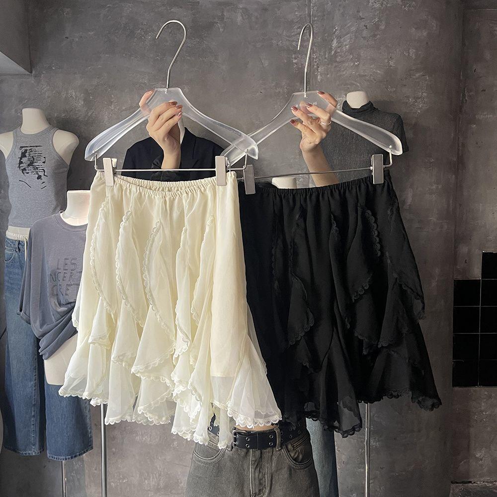 Sukně pro ženy Vintage ležérní sukně Jednobarevné Krajkové Asymetrické S vysokým pasem Sladké Mini Jarní Letní sukně