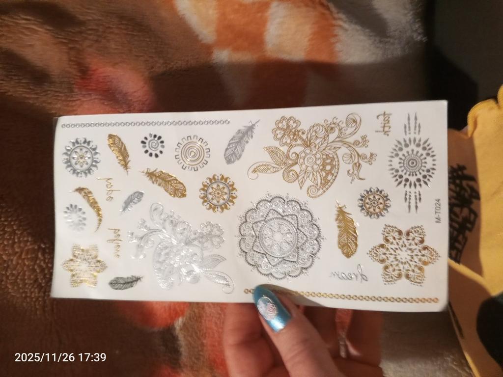 3 listy Tetování Dočasné Jednorázové Štítek Zlaté Metalické Vodotěsné Stříbrné Černé Flash Falešné Zlaté Tetování Lepidla Obtisk