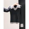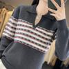 Lapel Contrasting Air Layer Cardigan for Women In Autumn and Winter New Loose and Versatile Cashmere Knitted Sweater Warm Base Shirt