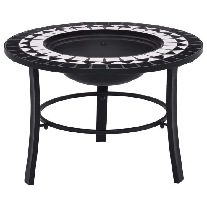 VidaXL Foyer Mosaïque Braséro de Jardin Foyer de Terrasse Braséro de Terrasse Foyer d'Extérieur Cour Arrière Noir et Blanc 46721