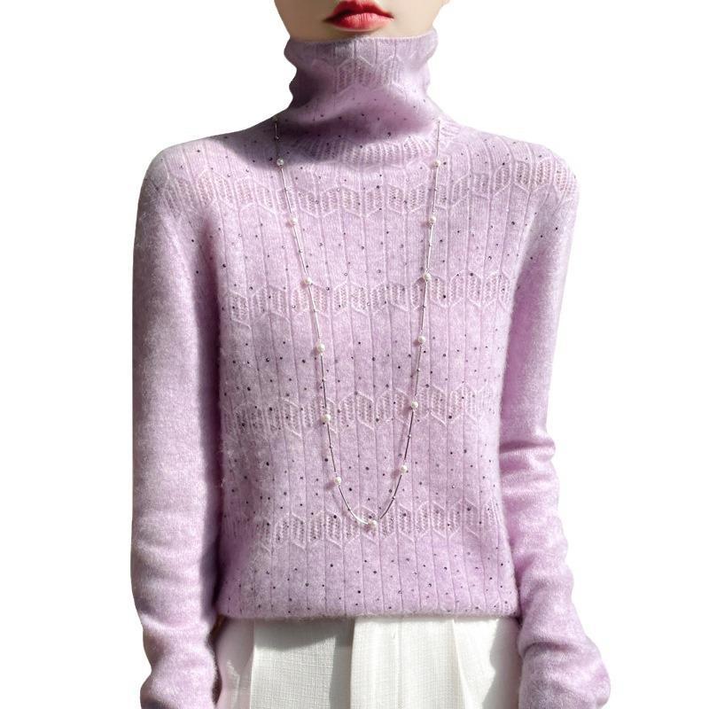Podzimní a zimní pletené svetry ready-to-wear první linie s rolákem vlněný základní svetr pro ženy žakárové pletené svetry s rolákem