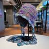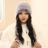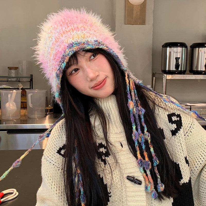 Autumn and winter color retro knitted lace-up women's warm mixed color feather yarn ear protection fringed wool hat