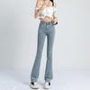Revamp your wardrobe with these stylish high-waist micro flare jeans, designed for a flattering, slimming fit. Perfect for spring and autumn, these women's bell bottom pants feature a high waistline to accentuate your curves. Crafted from quality denim, they provide both comfort and style, making them a versatile addition to your seasonal fashion collection.
