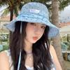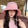 Sweet small fresh plaid bucket hat summer big brim thin student travel versatile sunshade sunscreen hat