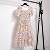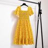 Women's Floral Print Chiffon Dress Casual Summer Autumn Short Sleeve Elastic Waist A-Line Midi Dress Fashion