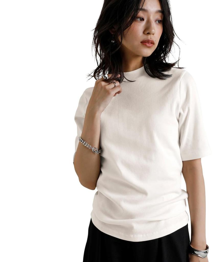 and cotton milling petite 3L [Nissen] Women's T-shirts cut-and-sewn shirts, UV-resistant, 100% material, high-neck, 5/8-sleeve T-shirt, off-white,