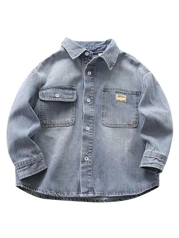 Chlapecká džínová košile Dětský kabát do tenké klopy Košile s dlouhým rukávem