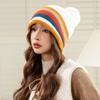 Rainbow Mixed Color Knitted Warm Hat Women's Fleece Warm Ear Protector Hairball Hat Dopamine Face Small Wool Hat
