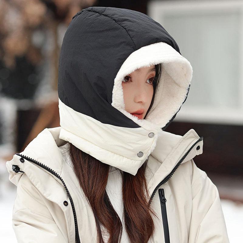 Fleece thickened warm child women's fashion color matching scarf one-piece hat autumn and winter skiing tram hat