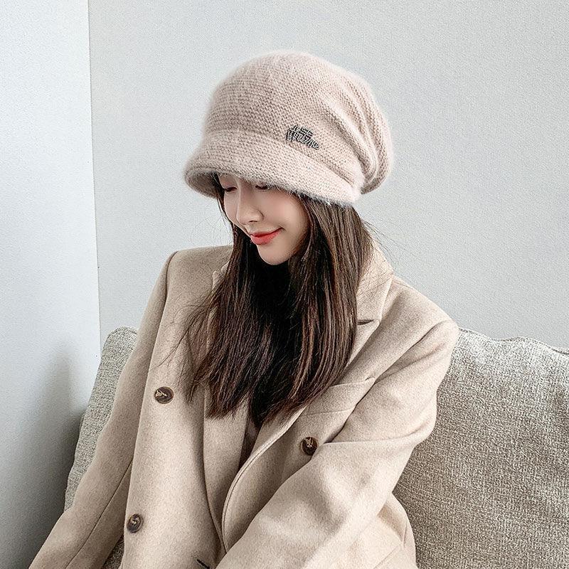 Winter new hat women's autumn and winter rabbit wool knitted hat high-grade double-layer thickened cold-proof headgear