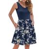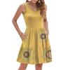 Dámské letní šaty bez rukávů, ležérní volné áčkového střihu, propínací na knoflíky, midi sluneční šaty s kapsami