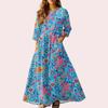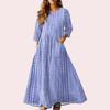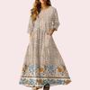 Dámské retro etnické lněné maxi šaty bez rukávů s výstřihem do V a stuhovou výšivkou