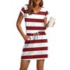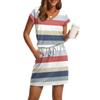 Dámské letní ležérní šaty s výstřihem do V, krátkým rukávem, stahováním v pase, kapsou a pruhovanou patchworkovou aplikací