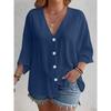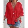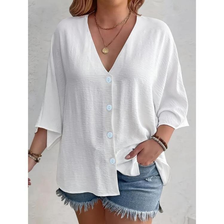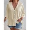 2025 New Women's Plus Size Casual V-Neck Long Sleeve T-Shirt Elegant Loose Blouse Solid Color Fashion Top for Spring Summer