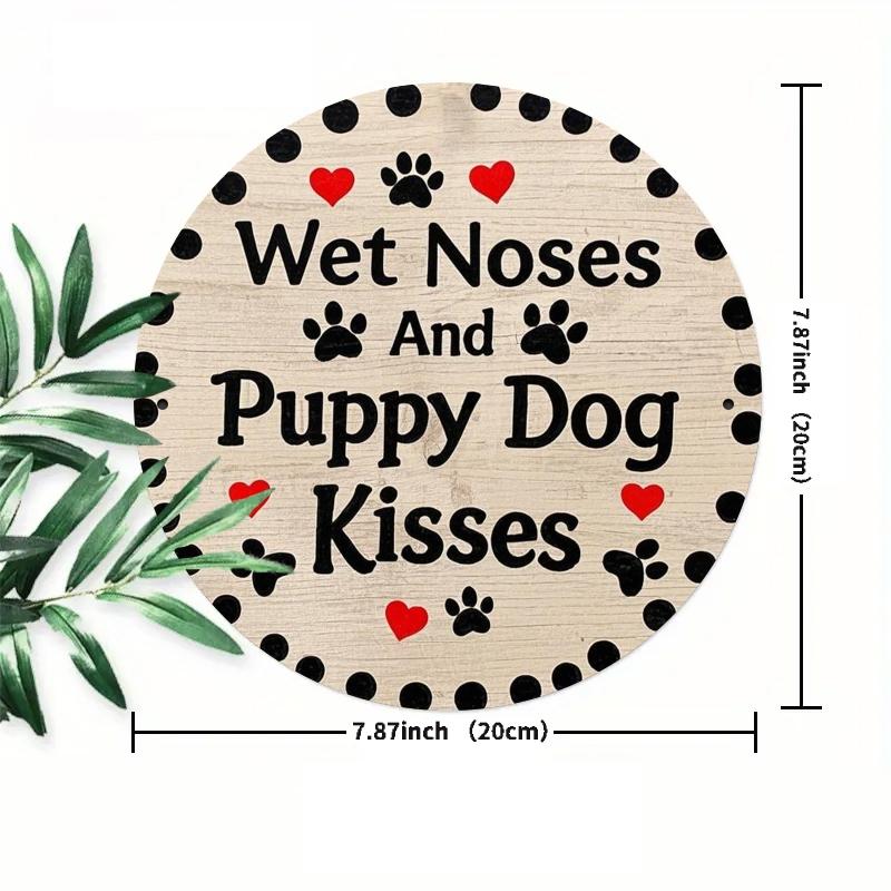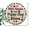 2d flat 20*20cm Circular Wooden Wall Sign "Wet Noses Puppy Dog Kisses" with Paw Print and Heart Shape, Home Decoration, Suitable for Entrance, Porch