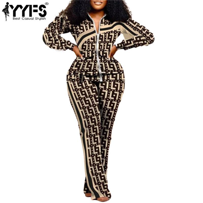 YYFS Dámská móda Ležérní Jaro Podzim Dlouhý rukáv POLO Krk Kalhoty Kalhoty Obleky