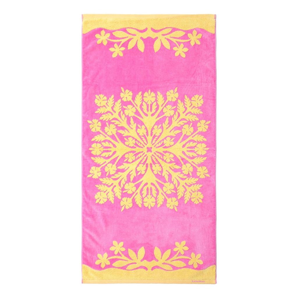 Mum Island Handkerchief Bath Towel Hawaiian Quilt Pattern Bee Happy Series 86103581 Hibiscus 60cm wide x 120cm long [Cathy Style] Women's Pink