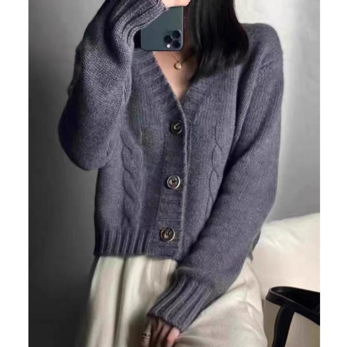 Harajuku Long Sleeve Women Cardigan Sweater Korean solid Streetwear thickening short Coats Casual loose Chic V-neck Y2k Sweater