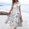 Women's Summer Casual Fashion Print Pocket Short Sleeve V-Neck Swing Dress