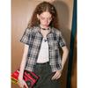 Short Sleeved Checkered Shirts for Women Summer Retro Versatile New Tops Loose Single Breasted Lapel Female's Blouses