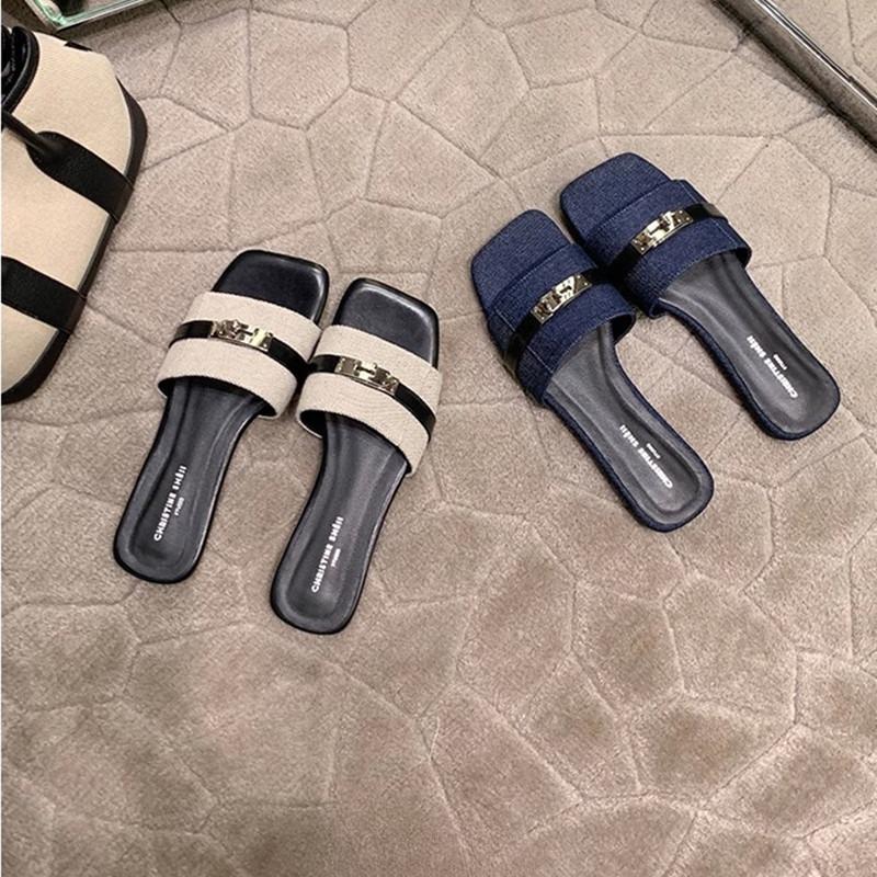 Square-toed Shoes Flat-bottomed Beach Slippers for Girls
