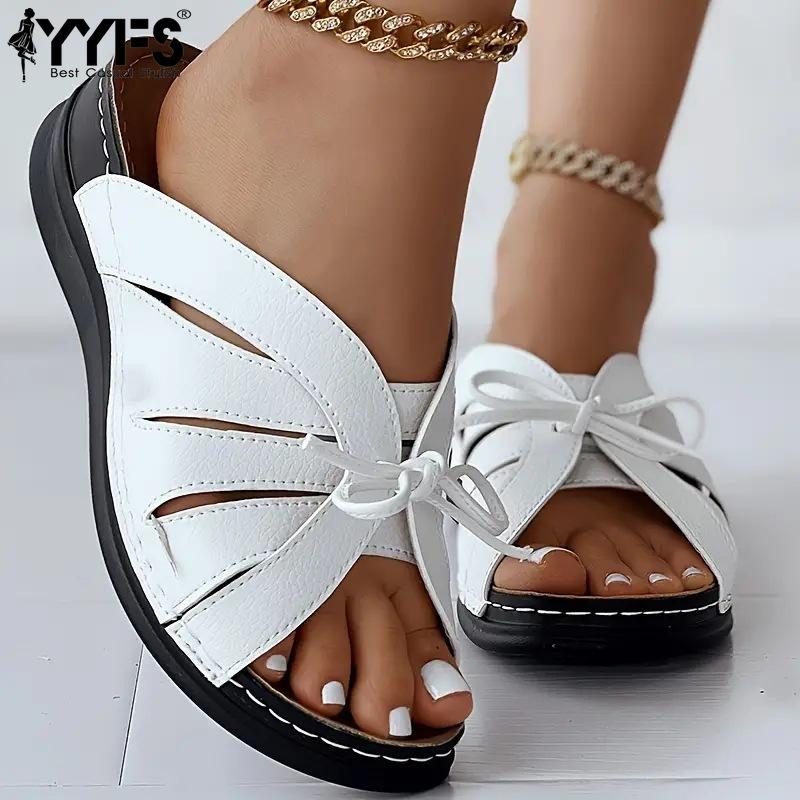 2025 Women Solid Color Lace Up Platform Sandals Fashion Soft Sole Slippers Versatile Summer Wedge Slippers