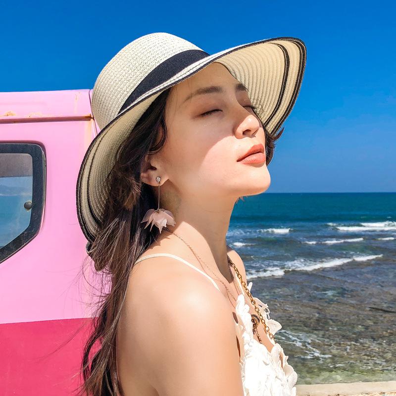 Spring and summer new hat women's woven straw hat bow beach hat summer sun hat sun hat