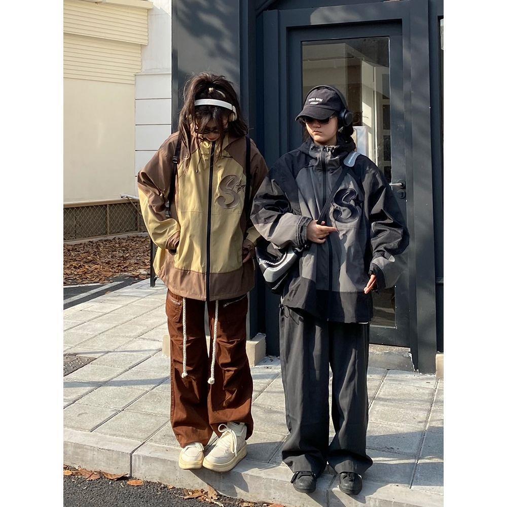 Unisexová trendy větrovka s kapucí v kontrastních barvách - Ležérní a volný střih podzimní bunda