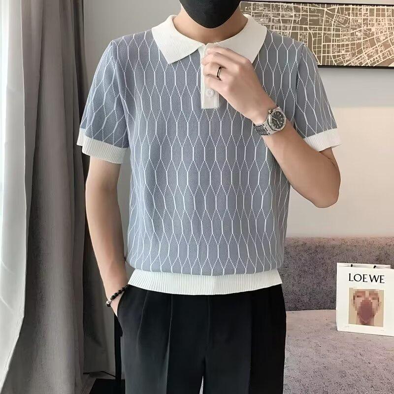 Men's Korean Slim Fit Contrast Ice Silk Polo Shirt - Short Sleeve, Cool, Handsome Lapel Design