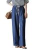 Relaxed denim pants that are loose and comfortable to wear. Not only are they stretchy with an elastic waistband, but the drawstring accent allows for fine adjustments, allowing you to adjust the fit to your personal preference. The fringe at the hem enhances the relaxed atmosphere. In addition, the ankle-length cropped length gives your feet a neat and tidy look, which is an attractive feature. They can be worn in three seasons: spring, summer, and fall, making them an excellent item that can be worn throughout the year and expands the range of your outfits.