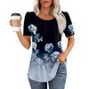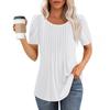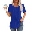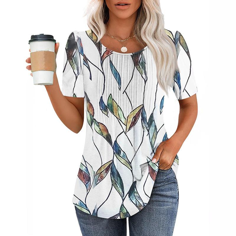 European And American Women's Tops New Style Pleated Round Neck Short-sleeved T-shirt Women's Shirt