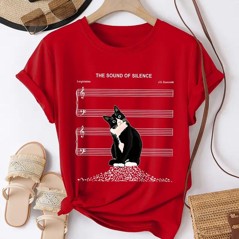 Women Summer T Shirt Retro Fashion Short Sleeve Tees Casual Kitten Printed Tops