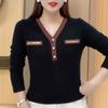 Casual Solid Color Spliced T-shirt Long Sleeve Commute V-Neck Spring Autumn Chic Diamonds Female Clothing Fashion Pullovers New