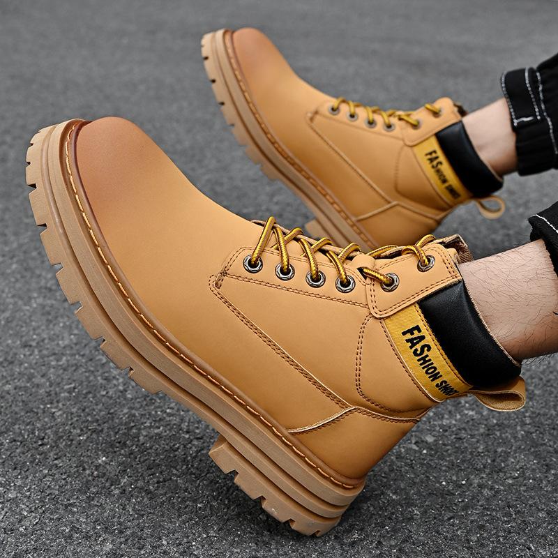 Autumn and winter new high-top large-size tooling men's shoes genuine leather rhubarb Martin boots with cotton to keep warm