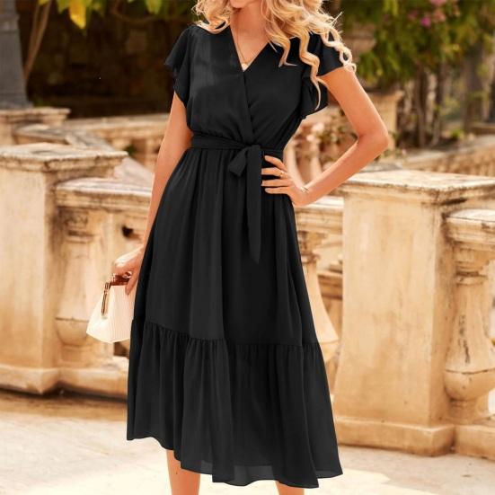 Available in a range of sizes from petite to large, this dress guarantees a perfect fit for every woman. From everyday wear to office attire, vacation outfits to party ensembles, this dress is suitable for various occasions including weddings, graduations, and beach outings. Embrace elegance and fashion with this solid color dress that complements any wardrobe effortlessly.