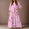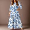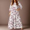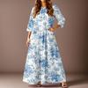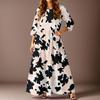 Dámské ležérní módní dlouhé šaty s tříčtvrtečními rukávy a květinovým potiskem s kapsami
