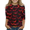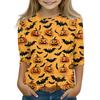 Dětské topy s 3/4 rukávem, ležérní tričko s halloweenským potiskem, pulovrová halenka s kulatým výstřihem