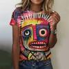 Letní dámské tričko s kulatým výstřihem a 3D abstraktním graffiti potiskem, módní a ležérní tričko s krátkým rukávem