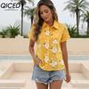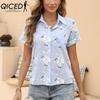 QICED Dámská móda Ležérní halenky a košile POLO s krátkým rukávem a výstřihem