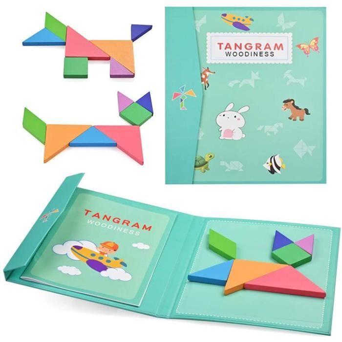 Vzdělávací hračka - LX - 96 Magnetické Tangramové puzzle - Cestování a karty - Zelená - Smíšené