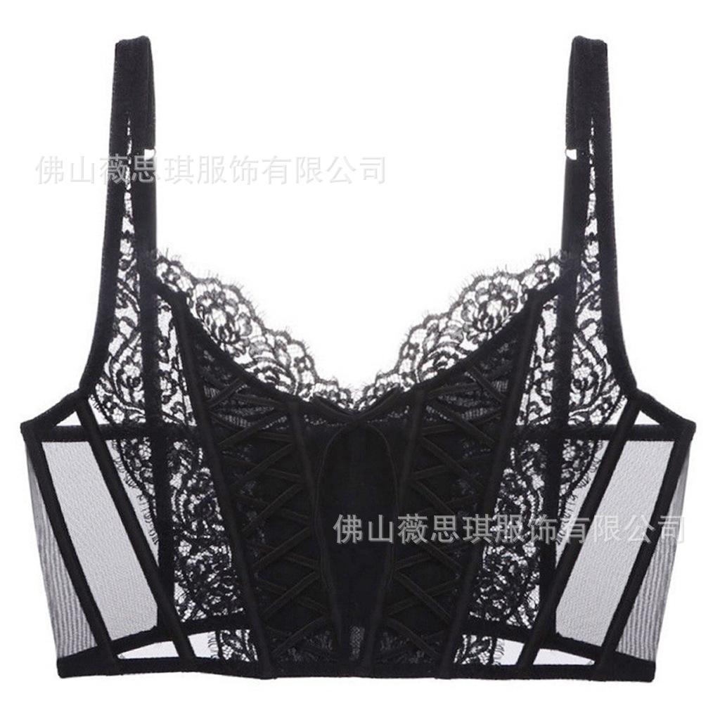 French underwear women's sexy thin lace big breasts show small bras, double breasts body sculpting fish bone underwear bra