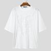INCERUN Men O Neck Short Sleeve Funny Lace Patchwork Mesh Sheer Loose T-shirts Tee