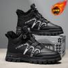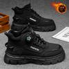 Fleece men's shoes winter new rotating button Martin shoes men's tooling shoes men's casual sports cotton shoes
