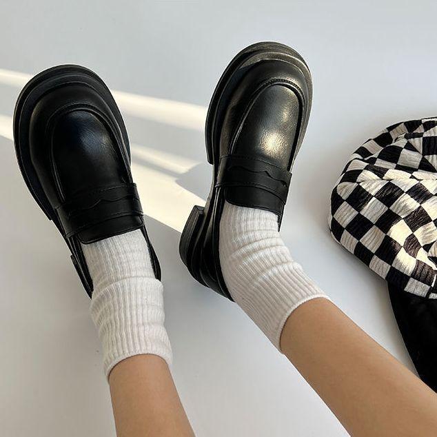 Thick heel and small leather shoes for women's spring new platform-soled college style mid-heel shoes