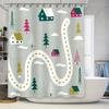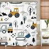 Playful Kids Bath Curtain Children's Shower Curtains Decorative with Red Tractor Tree Pattern Washable Fabric for Bathroom Perfe