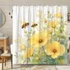 Žlutá květinová včelí sprchová závěs, Dekorativní sprchová závěs do koupelny, Vodotěsný sprchový závěs s háčky