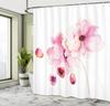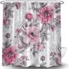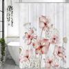 Bohemian Floral Watercolor Design Polní květiny Sprchový závěs, Bílý, Šedý, Růžový, Botanická koupelnová dekorace, Sprchový závěs s Ho