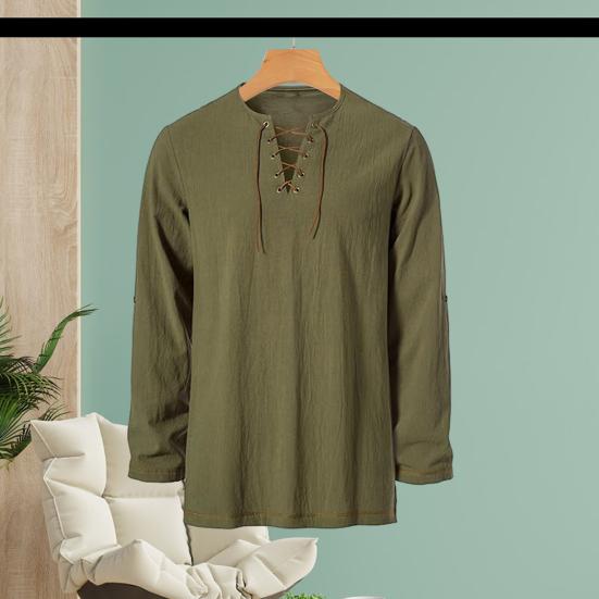 Představujeme pánské tričko s dlouhým rukávem v retro stylu, všestranný doplněk vašeho šatníku. Tento klasický top se bez námahy hodí k džínům, svrchnímu oblečení a ležérním kalhotám.. Nastavitelný krajkový límec dodává vašemu vzhledu nádech retro šarmu..
