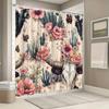 Cow Head Cactus Flower Shower Curtain, Bathroom Decorative Shower Curtain, Waterproof Shower Curtain with Hooks
